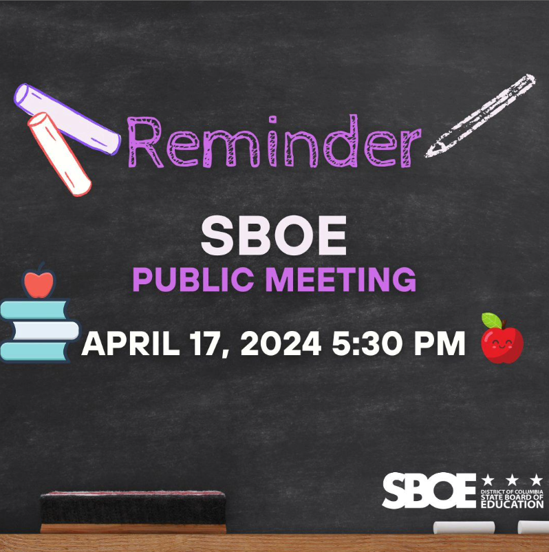 Tonight, April 17th at 5 pm: Join me at the DCSBOE’s April Public Meeting at 441 4th Street NW. There will be a panel discussion on the FY25 Proposed Budget, an administrative vote approving the District of Columbia’s first Social and Emotional Learning standards, and more.