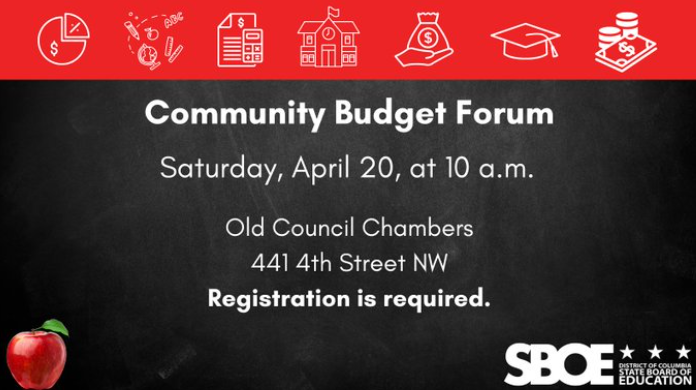 Saturday, April 20th at 10 am: Join me at the DCSBOE’s Community Budget Forum at 441 4th Street NW. Please register here.