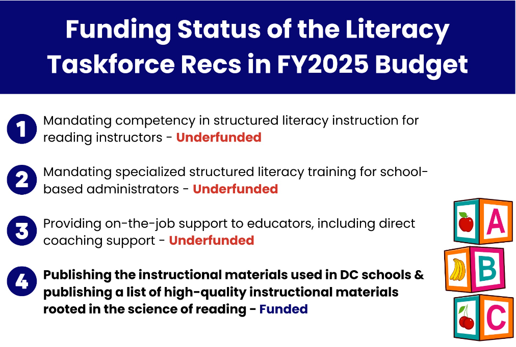 Last September, I worked with colleagues from different educational agencies to put forward 4 recommendations to make evidence-based literacy investments in DC. Here's where we stand: